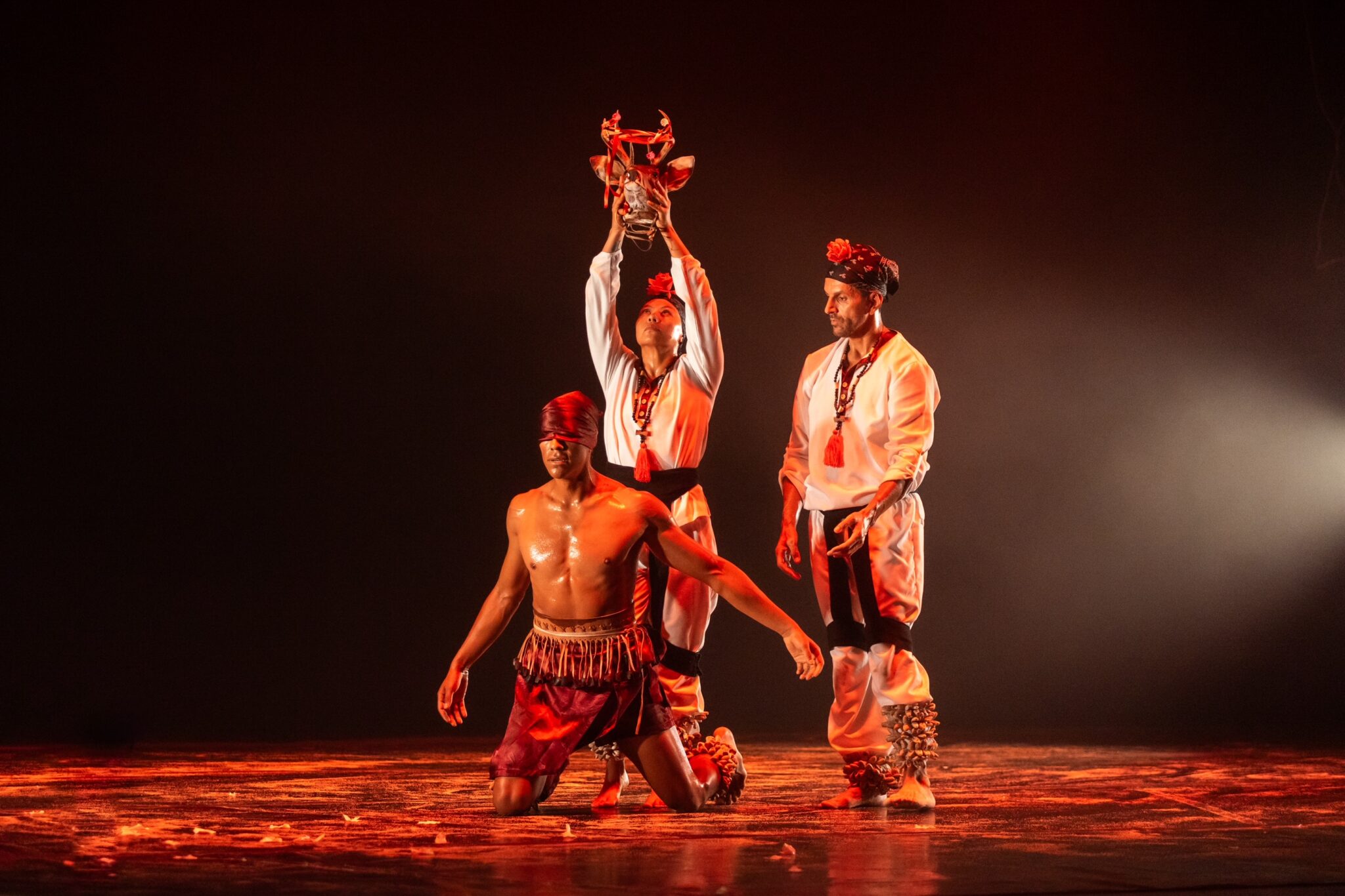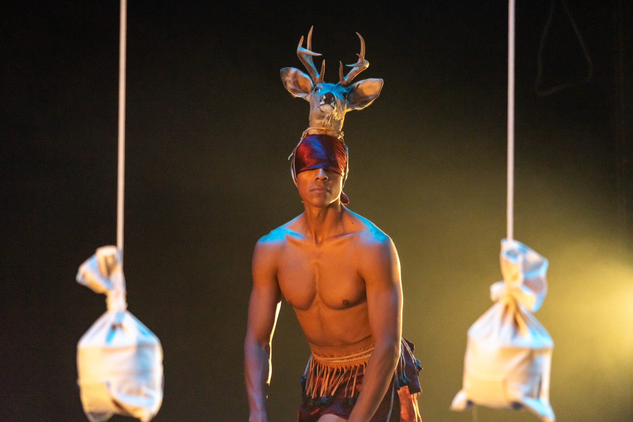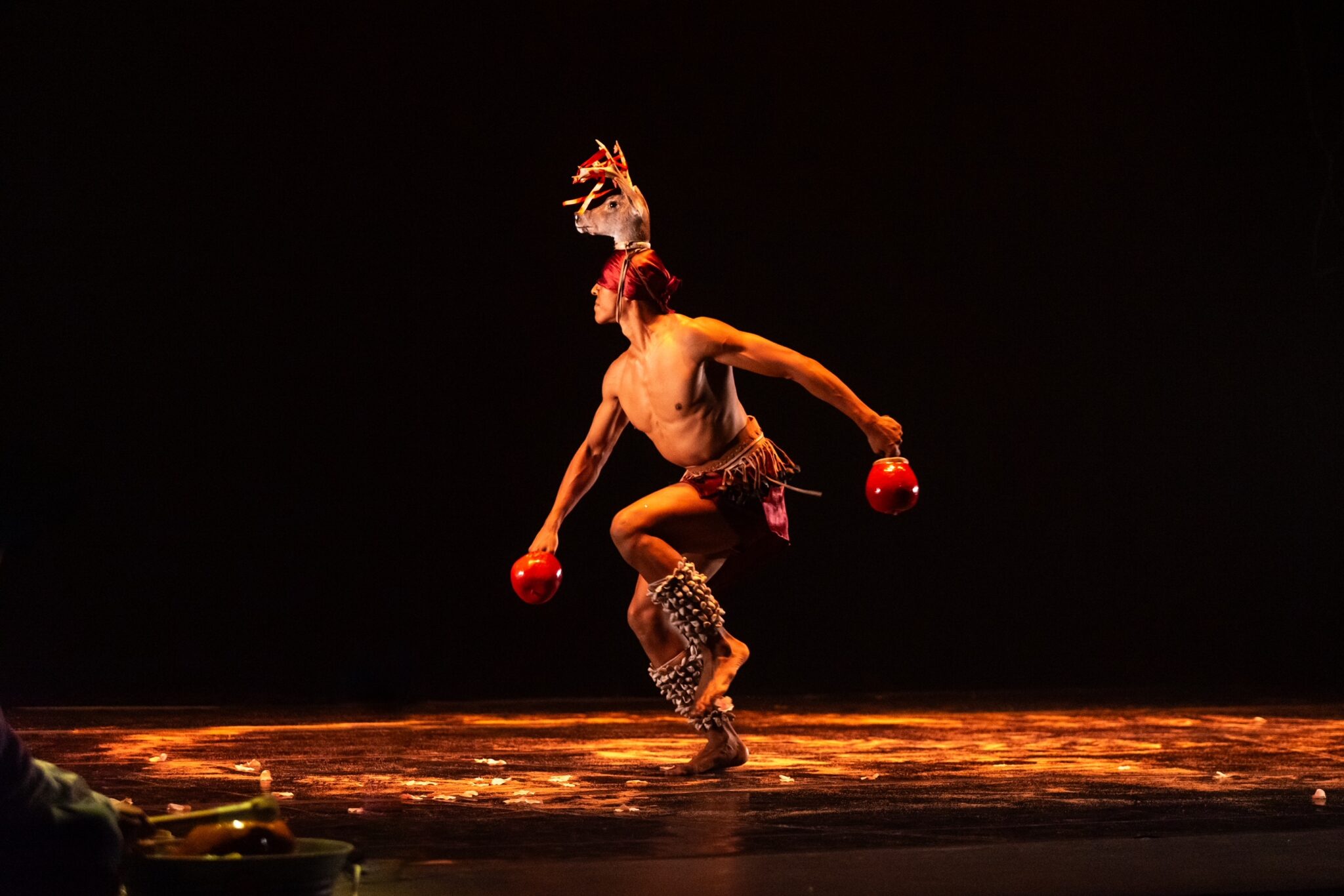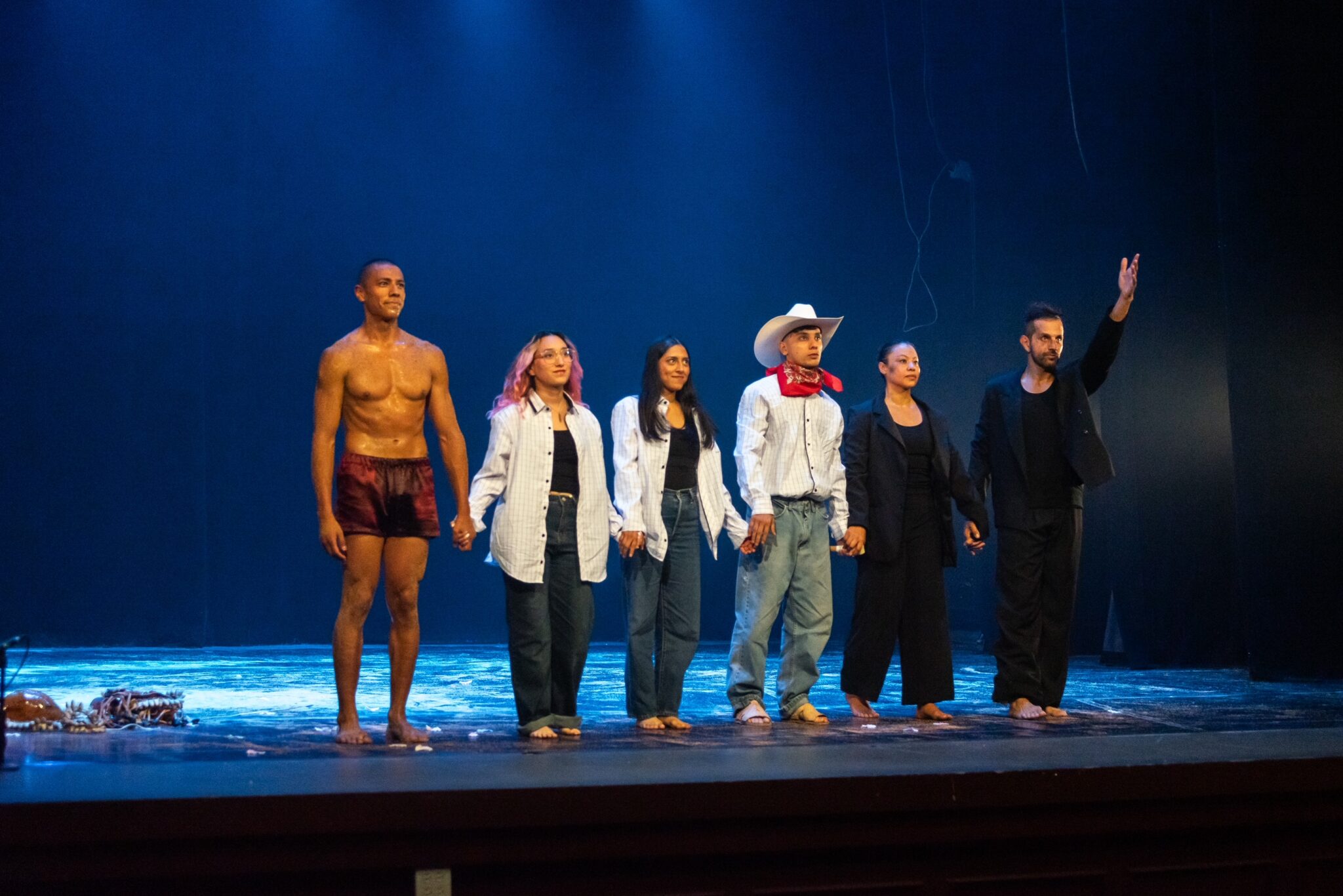 La interpretación contó con la fuerza escénica de Emiliano Castro en la figura del venado, una presencia que transita entre lo humano y lo animal; y con la precisión dancística de Gabriela Amaro y Ángel Arámbula, quienes corporizaron un lenguaje inspirado en los pascolas yoremes.